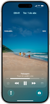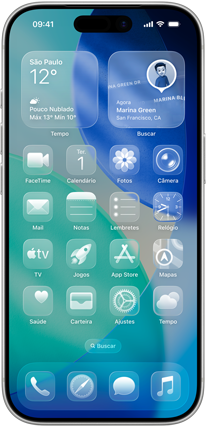 Com as qualidades ópticas do vidro e uma sensação de fluidez, o Liquid Glass traz um novo visual para a Tela Bloqueada, Tela de Início, Central de Controle, apps e muitos outros lugares.