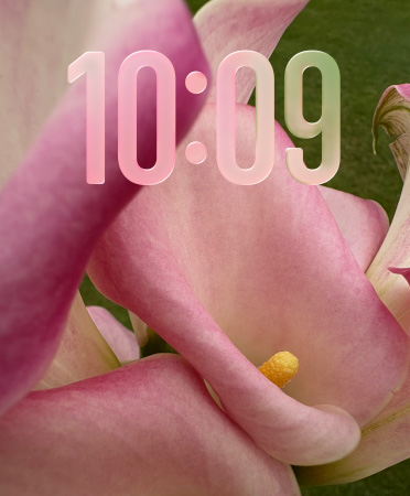 As horas ficam lindas em Liquid Glass e você vê ainda mais das suas fotos.