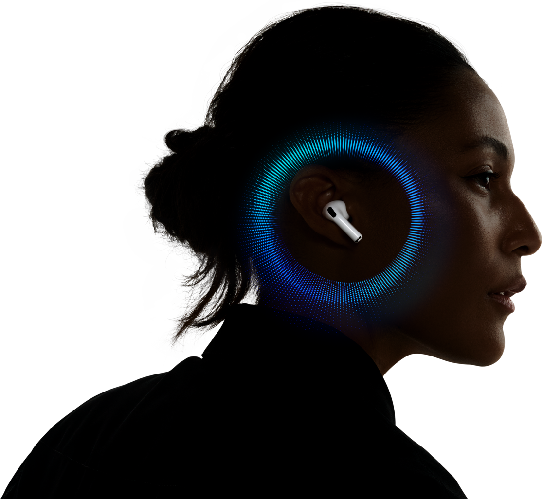 Los AirPods Pro 3 vienen con Ecualización Adaptativa de última generación que permite personalizar el uso de los dispositivos de acuerdo con la geometría única de tus orejas. Además, Volumen Personalizado usa el aprendizaje automático para entender tus patrones de escucha y así adaptarlos mejor a tus preferencias a lo largo del tiempo.18