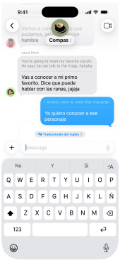 Activa Traducción en Vivo para traducir textos automáticamente en Mensajes1, leer subtítulos generados en vivo mientras usas FaceTime y escuchar traducciones habladas durante una llamada en la app Teléfono.2