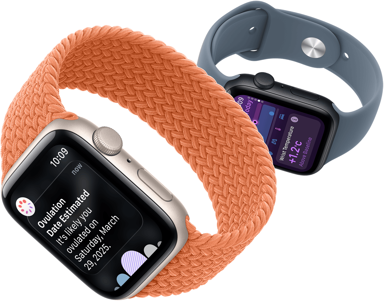 SE 3 ti pomocí vyspělých snímačů měří během spánku teplotu zápěstí.1 Aplikace Sledování cyklu na základě těchhle dat zpětně odhaduje dobu ovulace. To se může hodit při plánování rodičovství.9