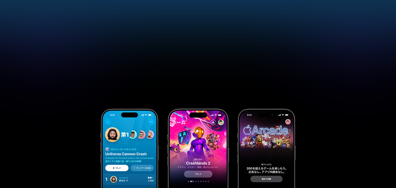 あらゆるApple製デバイスで、200以上のゲームを制限なしでプレイできます。広告も、追加の課金もありません。サブスクリプションに登録すると、家族全員で楽しめます。