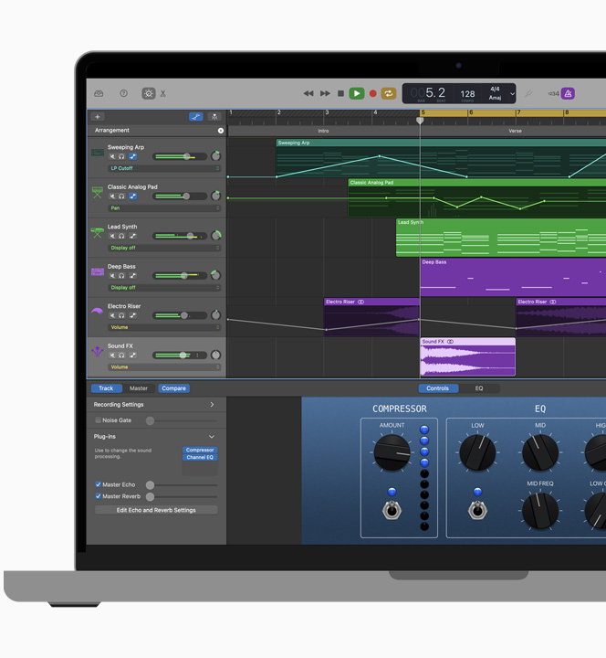 iPhone、iPad、Apple Watchが、ポータブルレコーダーに変身。録音を重ねたり、録音しておいた曲にボーカルを加えたり、Logic Proに直接読み込むこともできます。