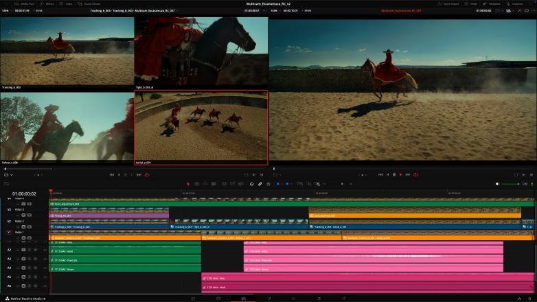 Studio Display and Mac Studio with multi-camera video editing workflow in DaVinci Resolve Studio