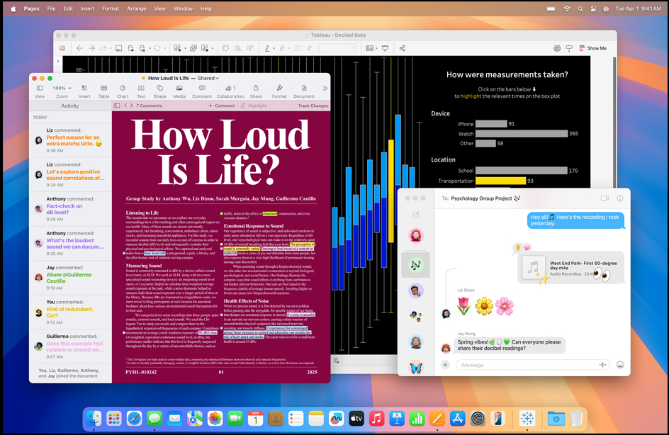 Abre varias ventanas al mismo tiempo, cambia su tamaño y organízalas como quieras. Usa el Dock, Exposé o un gesto para pasar rápidamente de una app a otra. Y organiza las ventanas de apps de forma que cubran mitades, tercios o cuartos de la pantalla.