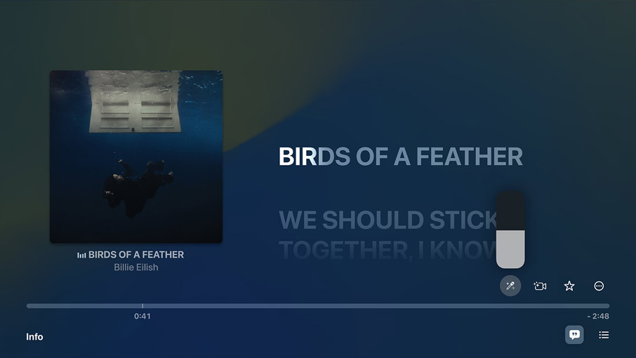 Słuchaj ponad 100 milionów utworów, 30 000 playlist oraz radia na żywo na dużym ekranie. Możesz nawet zostać gwiazdą własnego teledysku, dzięki Apple Music Sing6. Śpiewaj największe hity, śledząc słowa wyświetlane na żywo. A sterując ścieżkami wokalnymi, decyduj, czy chcesz wystąpić solo, dośpiewać drugi głos, czy wykonać partie chórku4.