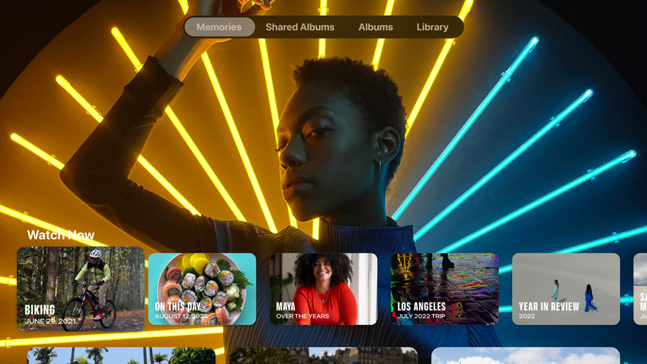 Zdjęcia. Udostępniana biblioteka zdjęć w iCloud sprawia, że teraz cała rodzina może łatwiej dzielić się zdjęciami i przeglądać je na telewizorze. Można też ustawić Wspomnienia jako wygaszacz ekranu, żeby wyjątkowe chwile obejrzeć jeszcze raz – na dużym ekranie.