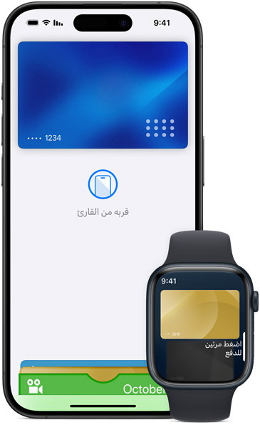 إن كنت قد أضفت إلى تطبيق المحفظة بطاقة ائتمان أو سحب أو بطاقة مسبقة الدفع أو بطاقة خاصة بأحد المتاجر أو بطاقة مكافآت متوافقة مع Apple Pay، ما عليك سوى النقر مرتين على زر الشاشة الرئيسية لفتح تطبيق المحفظة واستخدام بطاقتك مع القارئ. وفي موديلات iPhone X أو أحدث، انقر مرتين على الزر الجانبي. اعرف المزيد