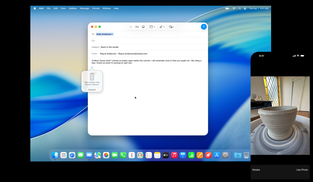 Continuity CameraScan or shoot straight to your Mac.