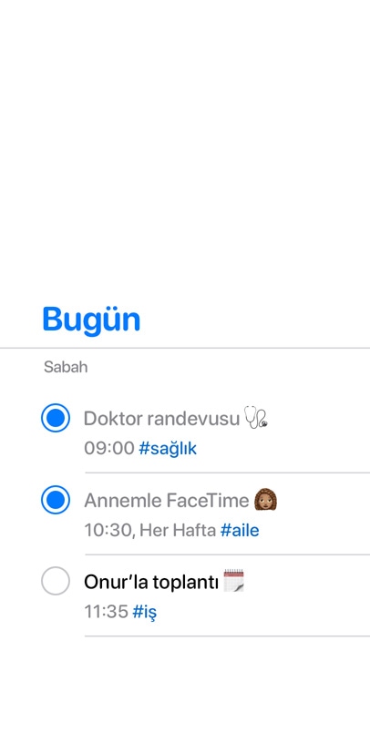 hiçbir şeyi unutmayın. Hareket halindeyken Siri ile hızlıca anımsatıcılar oluşturun ve güçlü araçlarla listelerinizi ve uyarılarınızı kişiselleştirin.